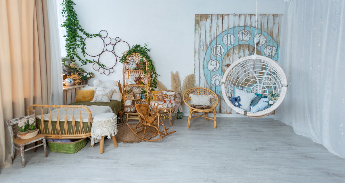 •Мебель — стулья, диван, кресло, качели.