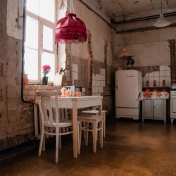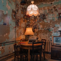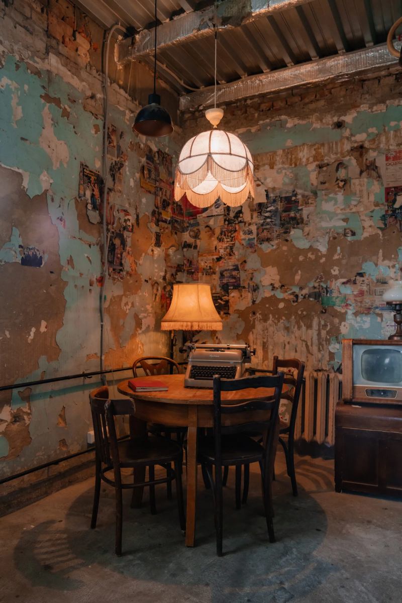 2−х этажное атмосферное творческое пространство, 60m2 (1−ый 33,5 m2) (2−ой 26,5 m2), лестница, кафель, старые стены. Заброшенная квартира, стиль СССР.