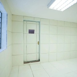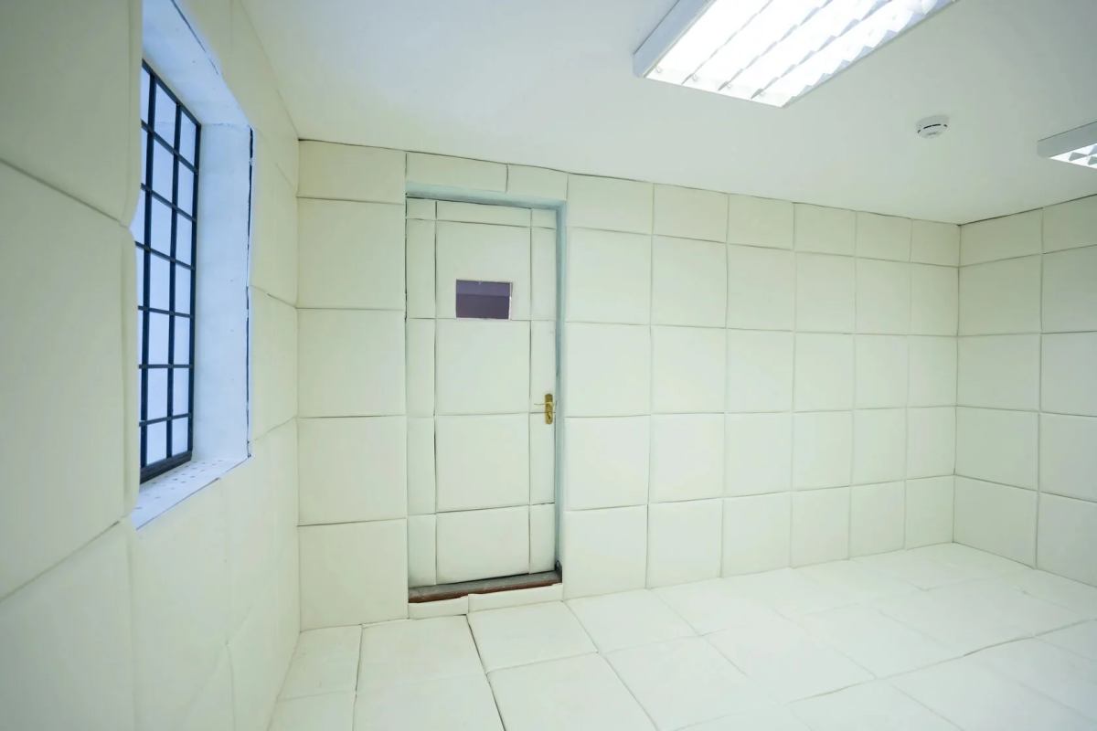- психушка с мягким и белым покрытием, окно с решеткой;