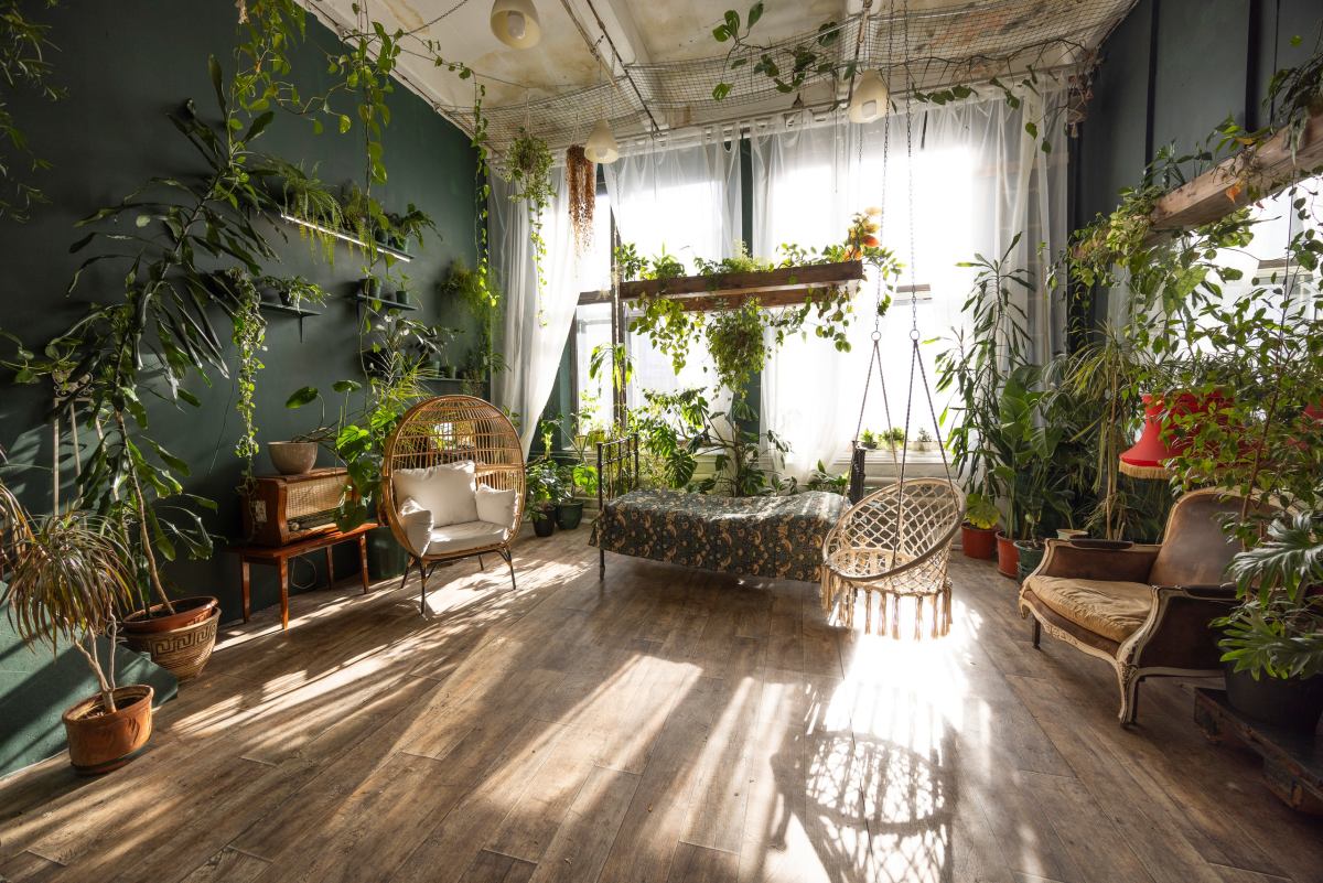 - Большие окна, естественный свет;