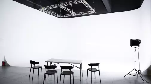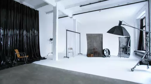 Зал площадью 50 кв.м с большим панорамным окном. Интерьер представляет собой апартаменты в современном европейском стиле. Зал насыщен множеством декора, деталей и локаций для съемки: