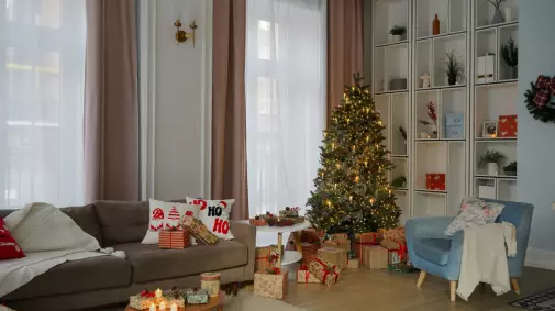 Стильный новогодний декор из трёх ёлочек легко перемещается по залу...