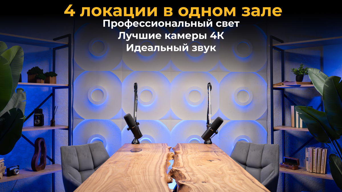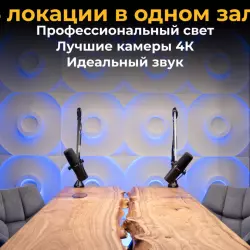 DIALOG - уютная, камерная студия 45 кв. метров с особой ламповой атмосферой, натуральным паркетом и огромными панорамными окнами от пола до потолка. 4 локации с необычными декорациями, включая зону с видеодоской на двоих человек. Идеальна для интервью/подкастов, экспертных видео, записи курсов, вебинаров и трансляций. В стоимость аренды входит комплект посто