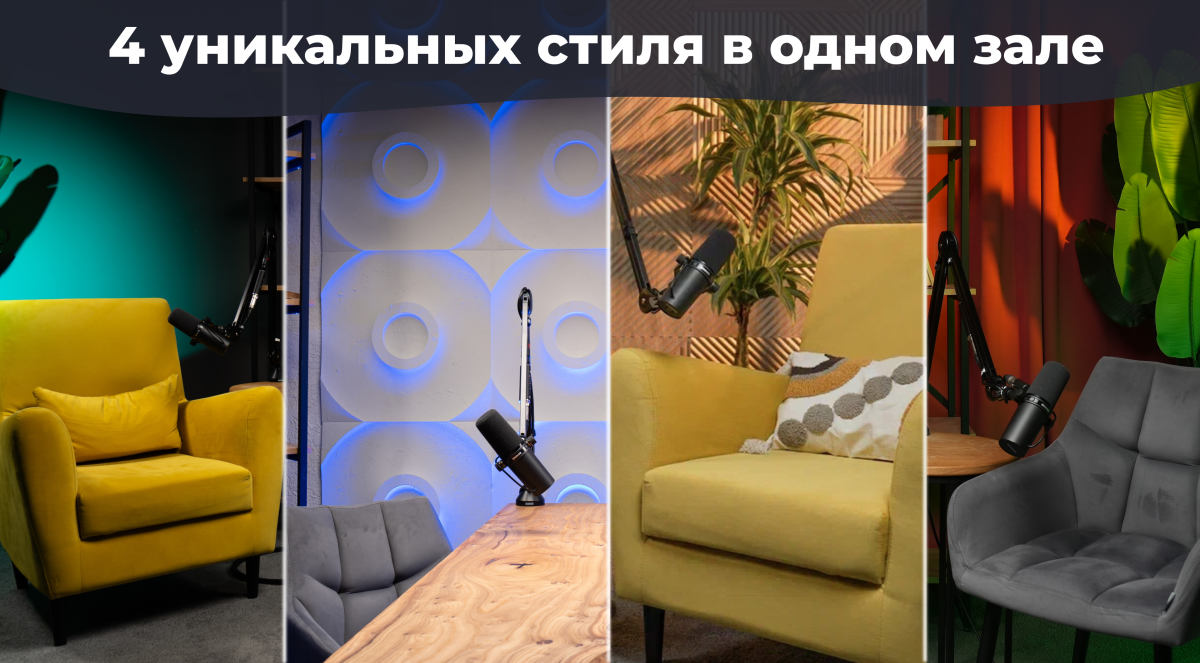 Зал «Эйфория» — это то место, где ваш контент выглядит на все сто. Мы предлагаем студию для видеосъемки, где можно быстро менять картинку под ваши задачи.
