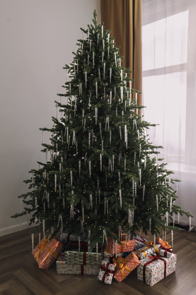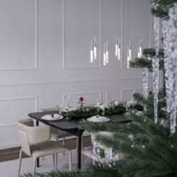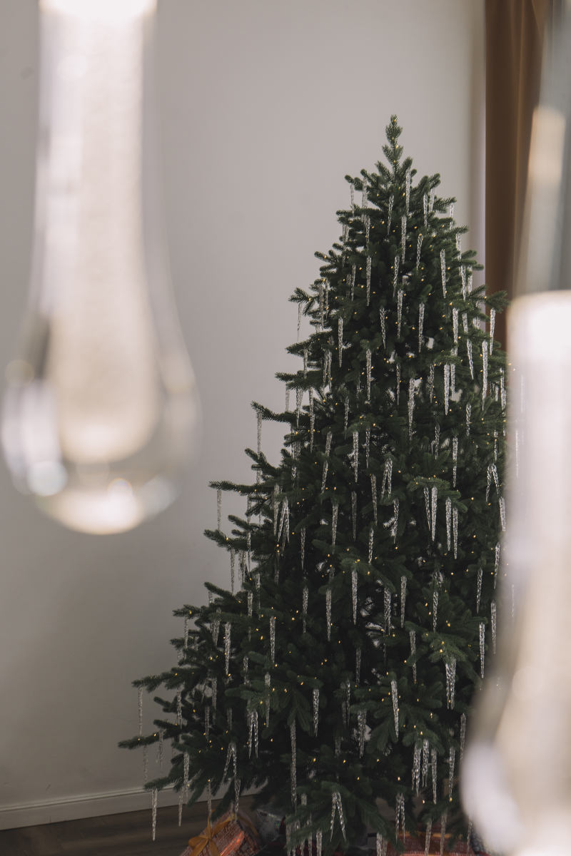Современный минимализм в светлых тонах с большими панорамными окнами: большой диван-трансформер, кресло, стол из слэба дерева, новогодний интерьер, фотофоны, гримерный стол, естественный свет