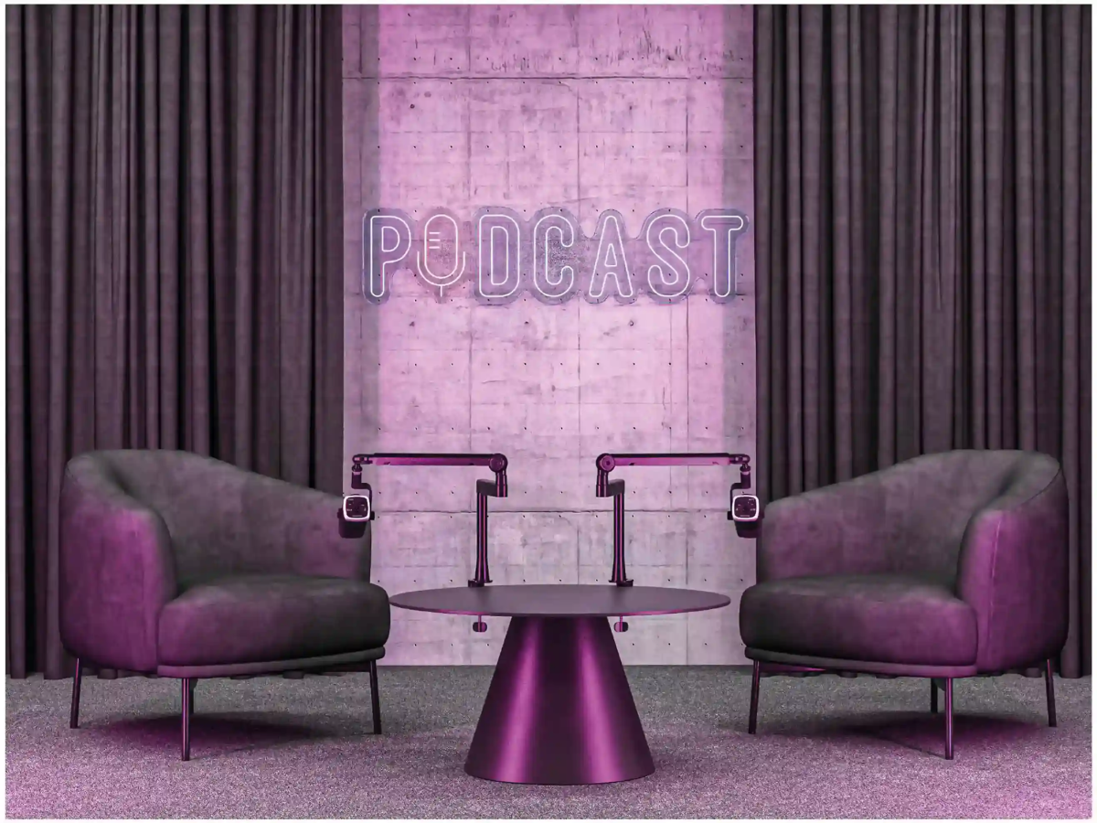 Стильная студия для записи подкастов. Включено все необходимое оборудование и сопровождение оператором. Микрофоны Союз или Shure на выбор. Акустика и звукоизоляция.