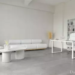 В основе интерьера — минимализм, простор, функциональность и четкая организация пространства, где каждый элемент декора имеет свое место.