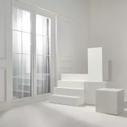 Универсальный, минималистичный, светлый зал с зоной интерьера и циклорамой