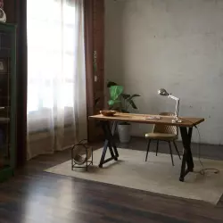 В зале три панорамных окна - высотой 5 метров, выходящие на восток, которые обеспечивают много естественного света. Потолки высотой 6 метров. На окнах шторы в 2 слоя, позволяющие уменьшать поток естественного света.