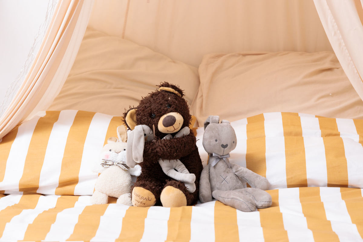 Розовая кровать с множеством ат