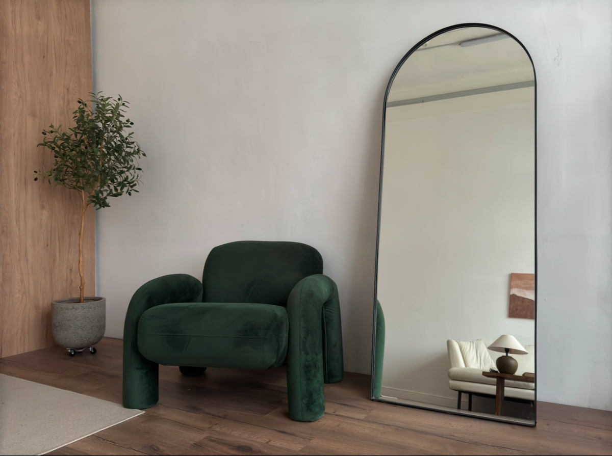Современный минимализм в светлых тонах с большими панорамными окнами: большой диван-трансформер, кресло, стол из слэба дерева, новогодний интерьер, фотофоны, гримерный стол, естественный свет