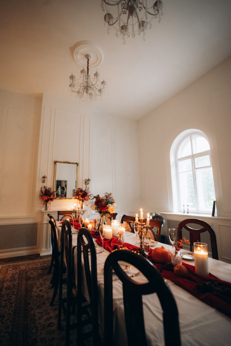 Тёмная комната – глубина и винтажное очарование. Полумрак свечей, антикварная мебель, массивные столы и пианино делают этот зал идеальным для драматичных и мистических образов.