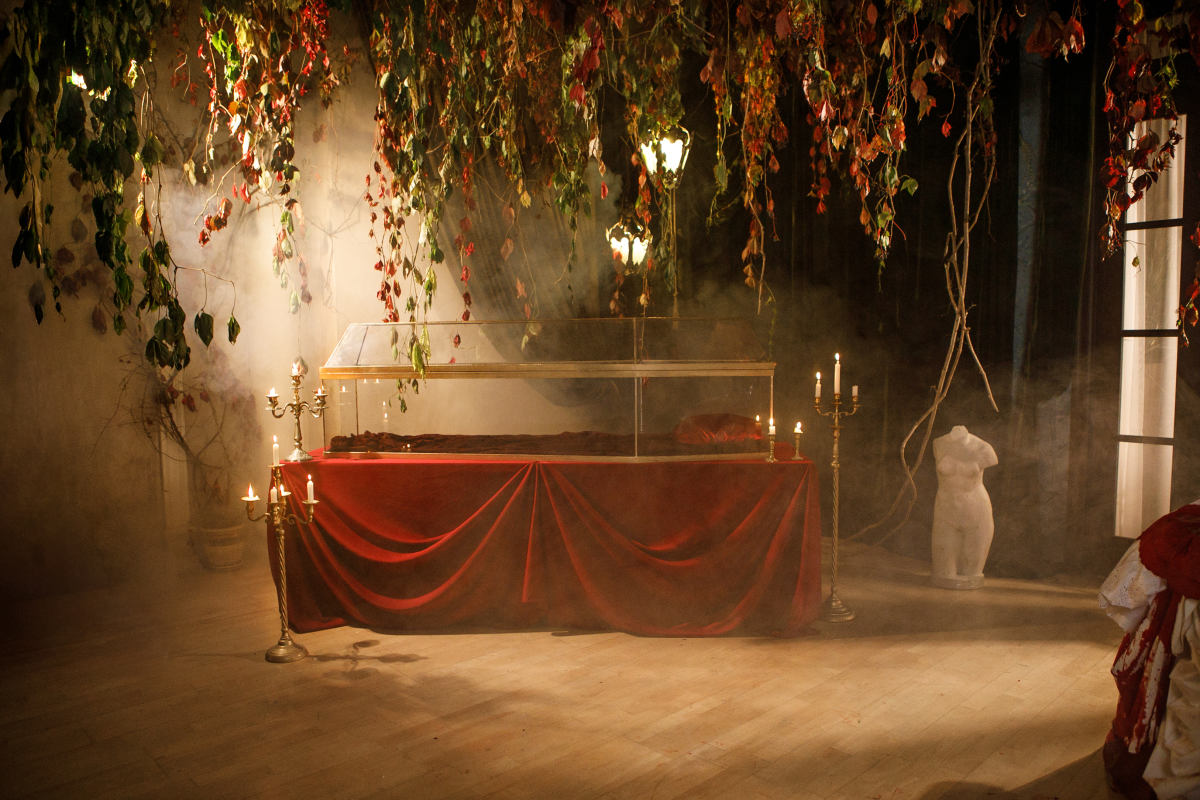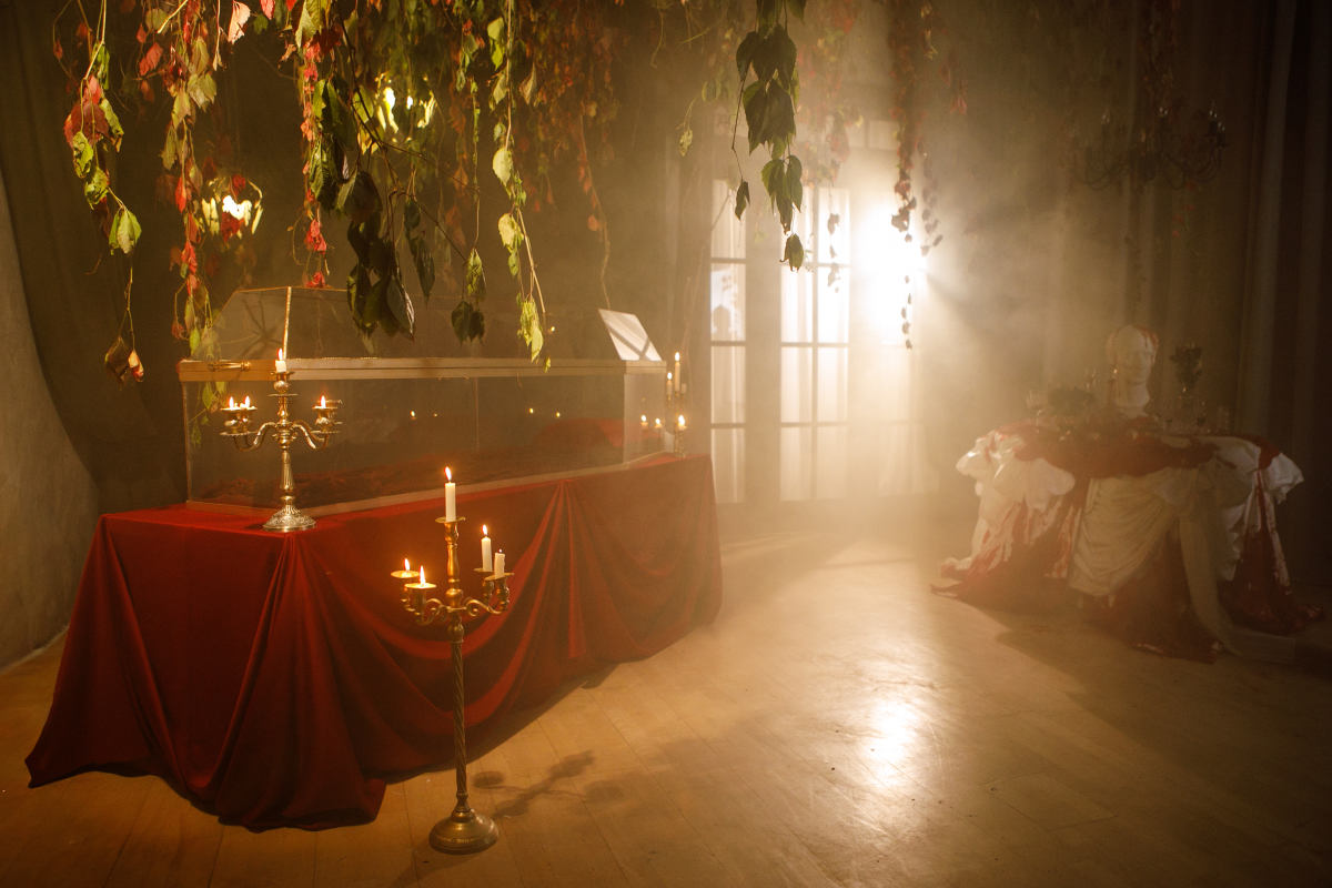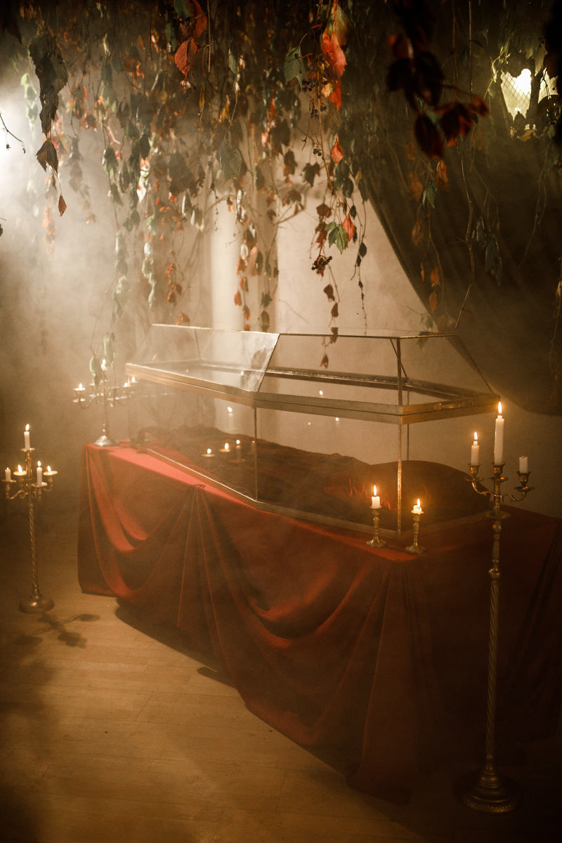 Тёмная комната – глубина и винтажное очарование. Полумрак свечей, антикварная мебель, массивные столы и пианино делают этот зал идеальным для драматичных и мистических образов.