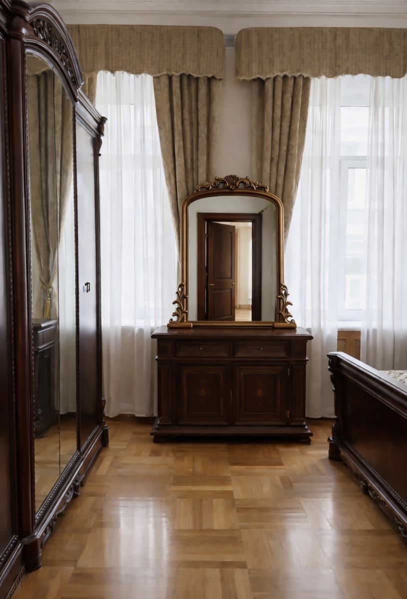 60 кв. м., потолок 5 метров, большое окно 5×3 метра на солнечную сторону. Тёмно-серые шторы блэкаут. Большой выбор тканей, фонов и предметов интерьера, идеально сочетающихся друг с другом.