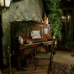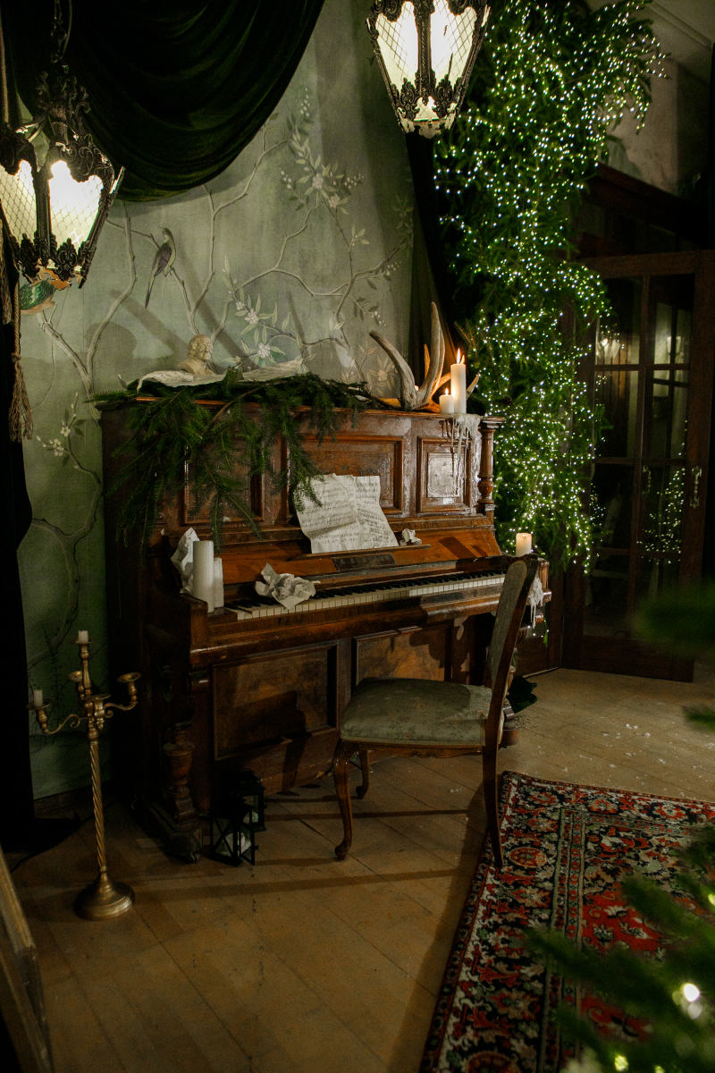 ЧЁРНАЯ угловая циклорама, старинное пианино, стена с градиентом.
