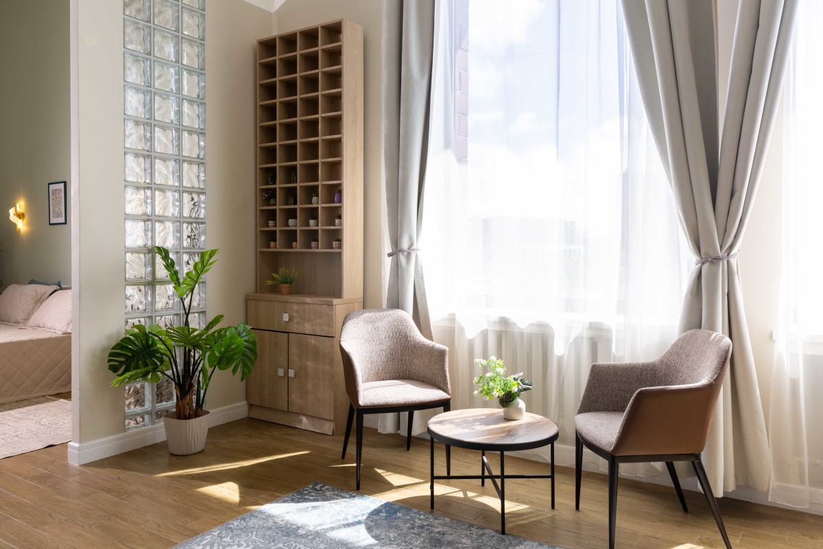 Светлый, просторный зал в стиле апартов!