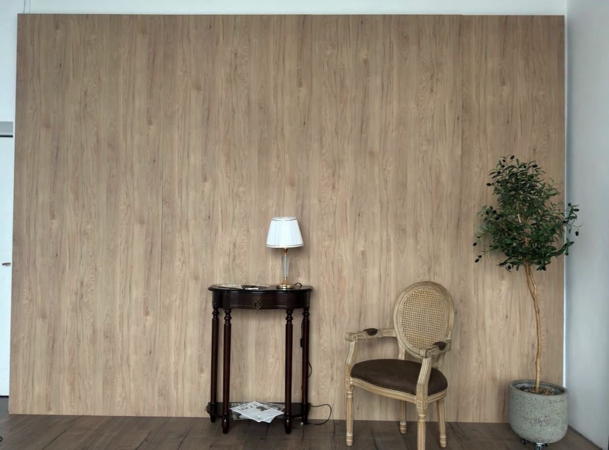 Долгожданная деревянная стена уже в зале!