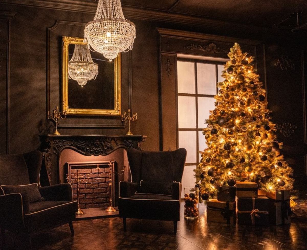 Большой зал "Honey". 3 разные фотозоны, наполняемая ванна, будуар, кровать с балдахином, чёрная циклорама, чёрная фотозона с золотыми подсвечниками.