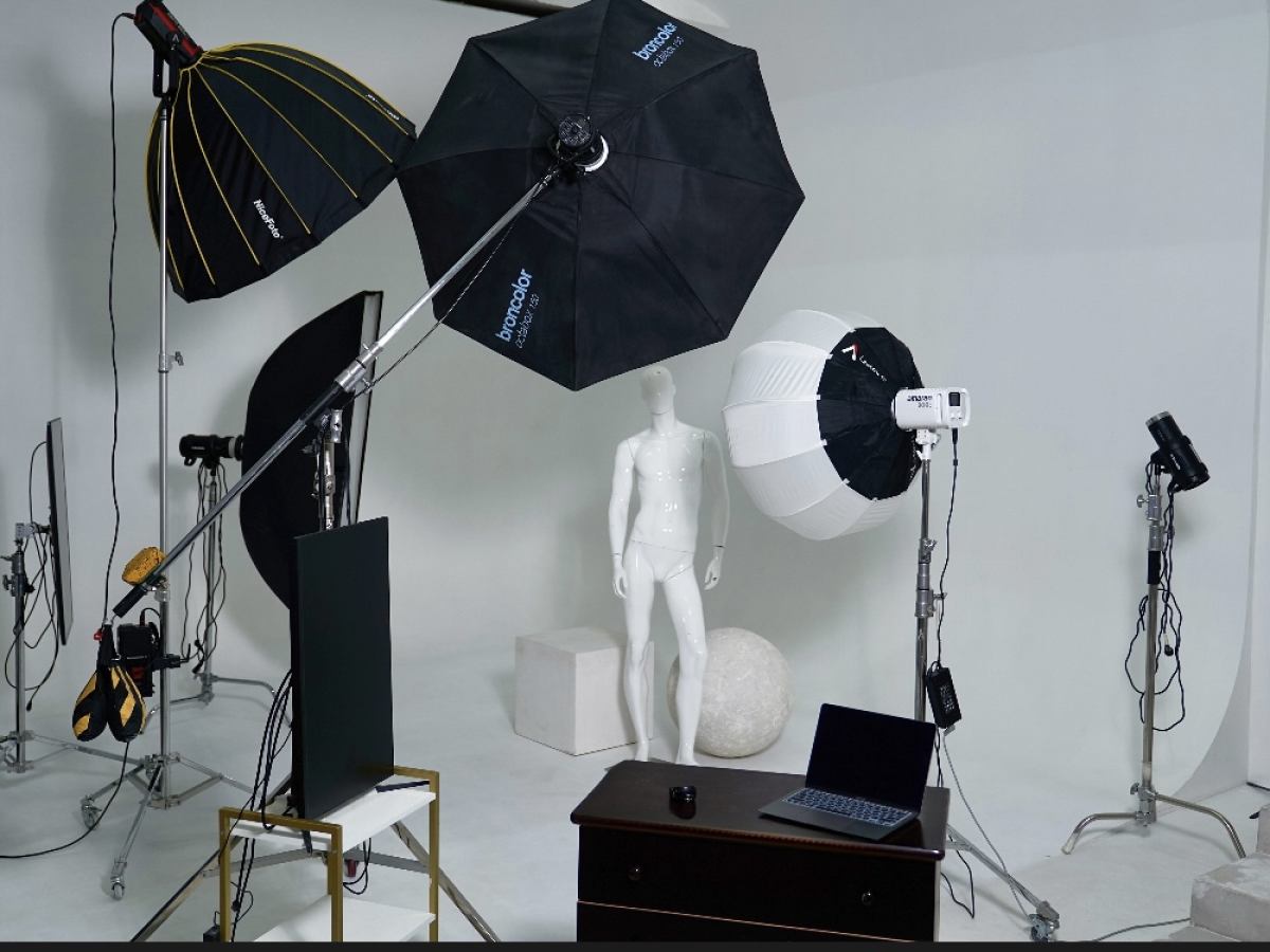 Гримерные места и рэйлы в зале упростят работу и сэкономят время во время модельных съемок и создания контента для каталогов.