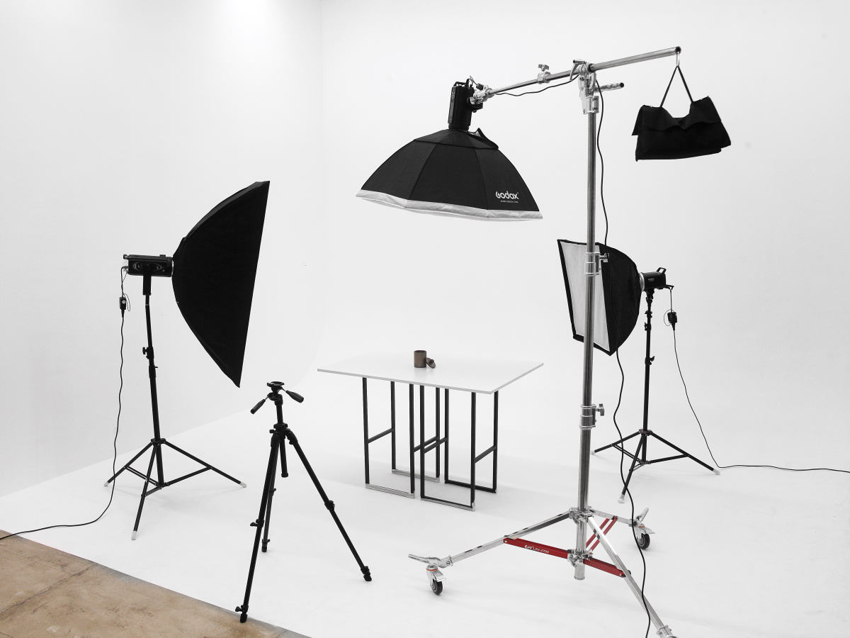 Большой полностью чёрный павильон с огромной черной циклорамой