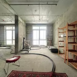 Светлый лофт с большими окнами и причудливыми параметрическими конструкциями.
