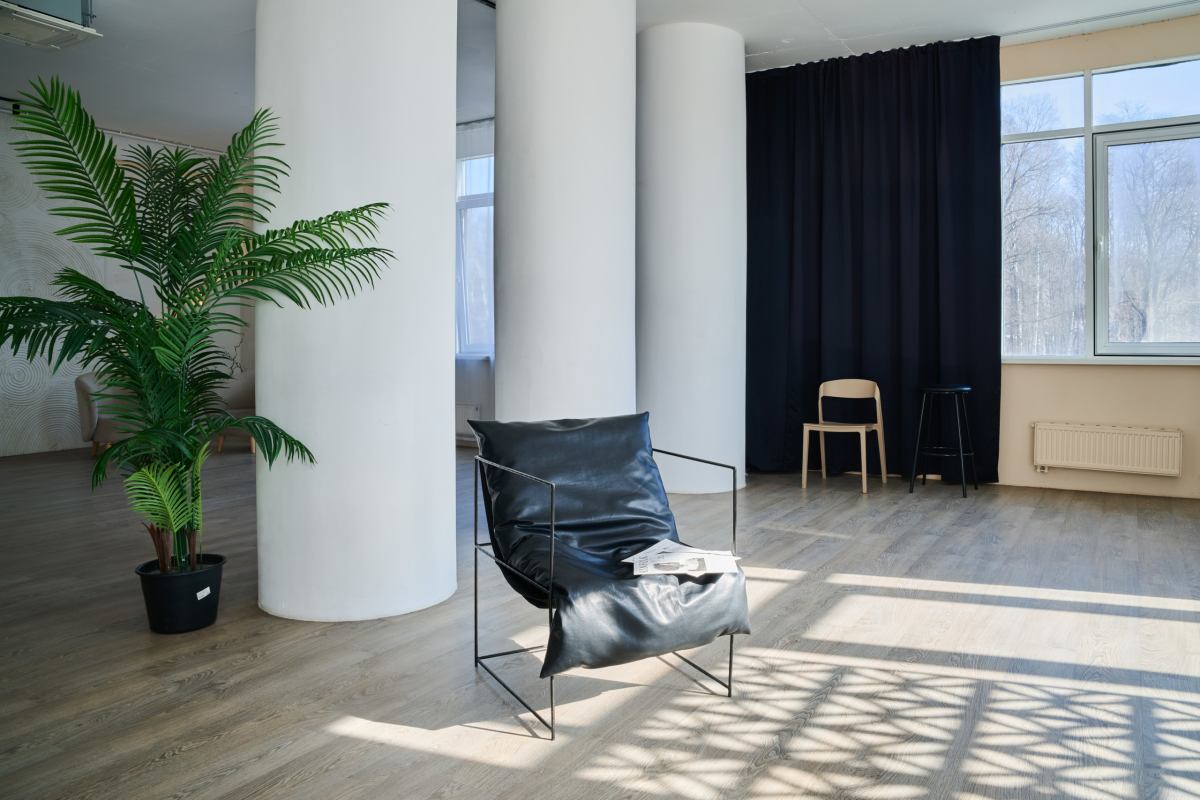 Современный интерьерный зал в стиле минимализм