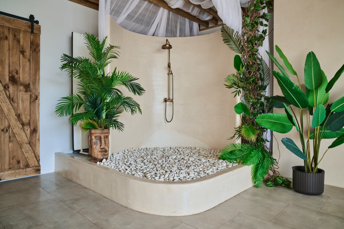Балийский зал с душем на солнечной стороне с видео светом
