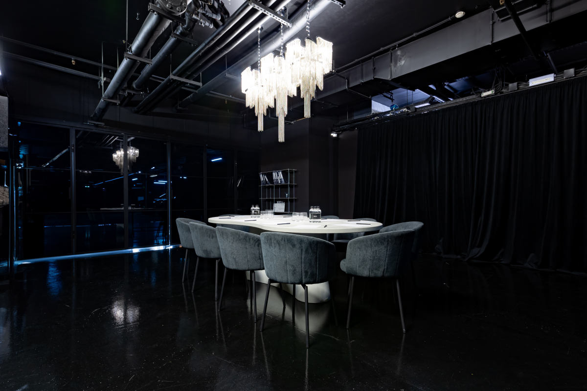 Зал c функциональной кухней с полным набором мебели и посуды и отлично подойдет для съемок кулинарных передач и роликов, мастер-классов и мероприятий.