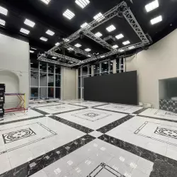 Хромакей циклорама, белая циклорама и театральная сцена в одном зале. Возможна запись чистого звука.