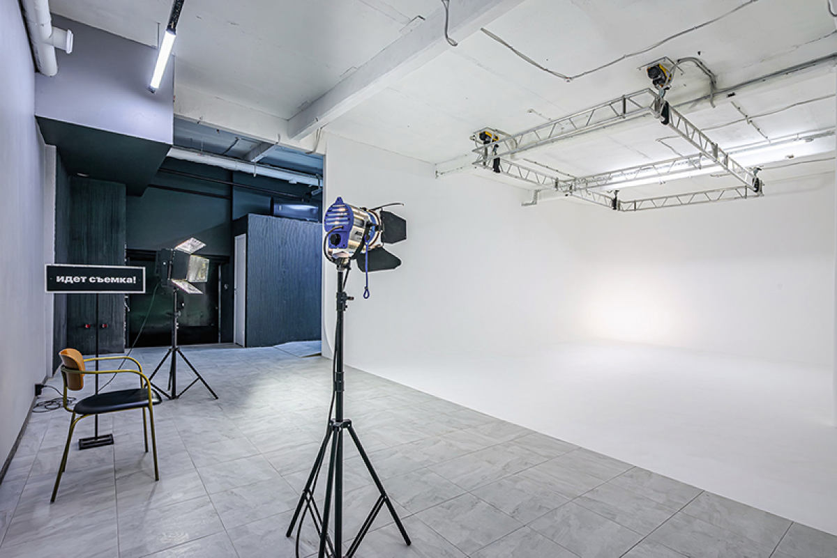 Профессиональное пространство с большой белой циклорамой и фермой.