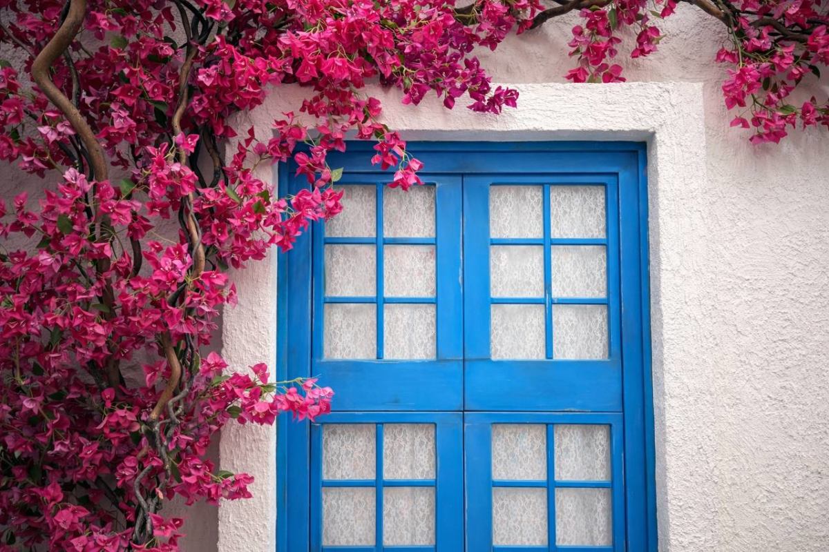 САНТОРИНИ — свет, вдохновение, контраст белой архитектуры и бугенвиллий.