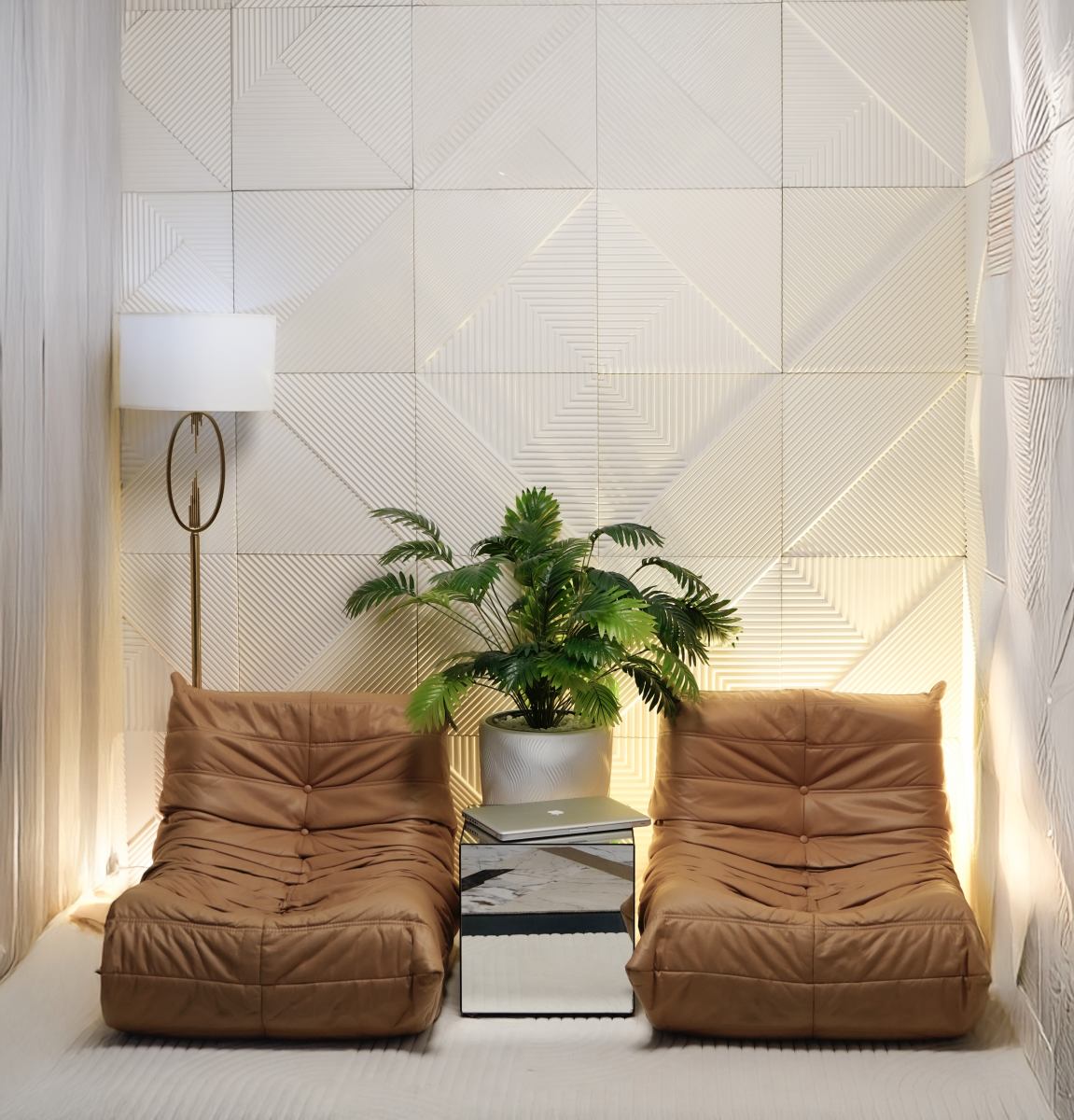 Двухкомнатный интерьерный зал в винтажном стиле с циклорамой