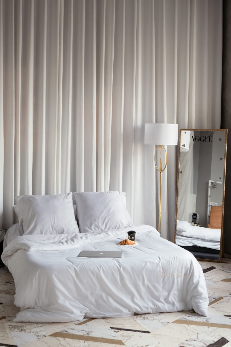 Стильная просторная гримёрная для подготовки к съёмкам со всеми удобствами.