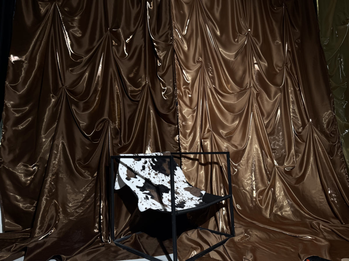 Темный зал c необычным дизайнерским решением. Подойдет для съемок подкастов, творческих съемок и различных fashion-задумок.