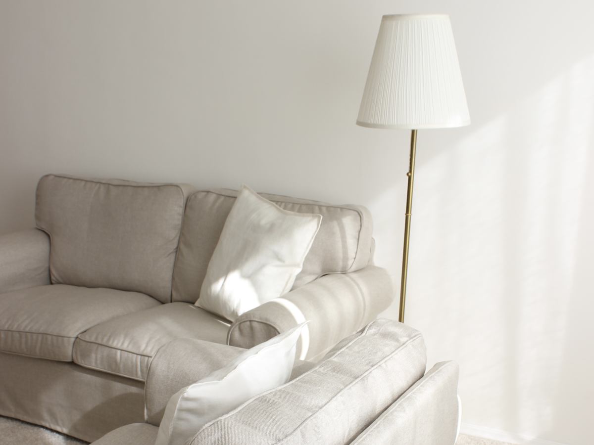 Просторный зал с циклорамой, стильной мебелью и с большим количеством естественного света.
