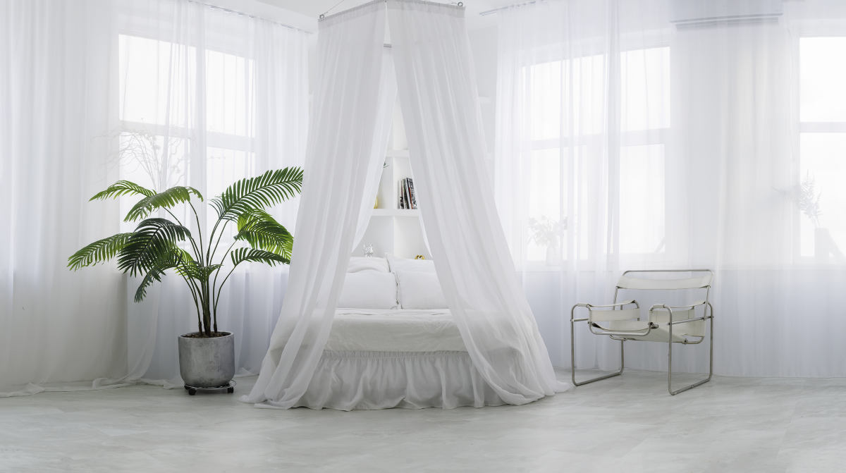 Новый, очень светлый зал с циклорамой и кроватью, с двумя большими окнами на южную сторону и с двумя - на восточную. Белая стена, оформленная 3D панелями"волны".
