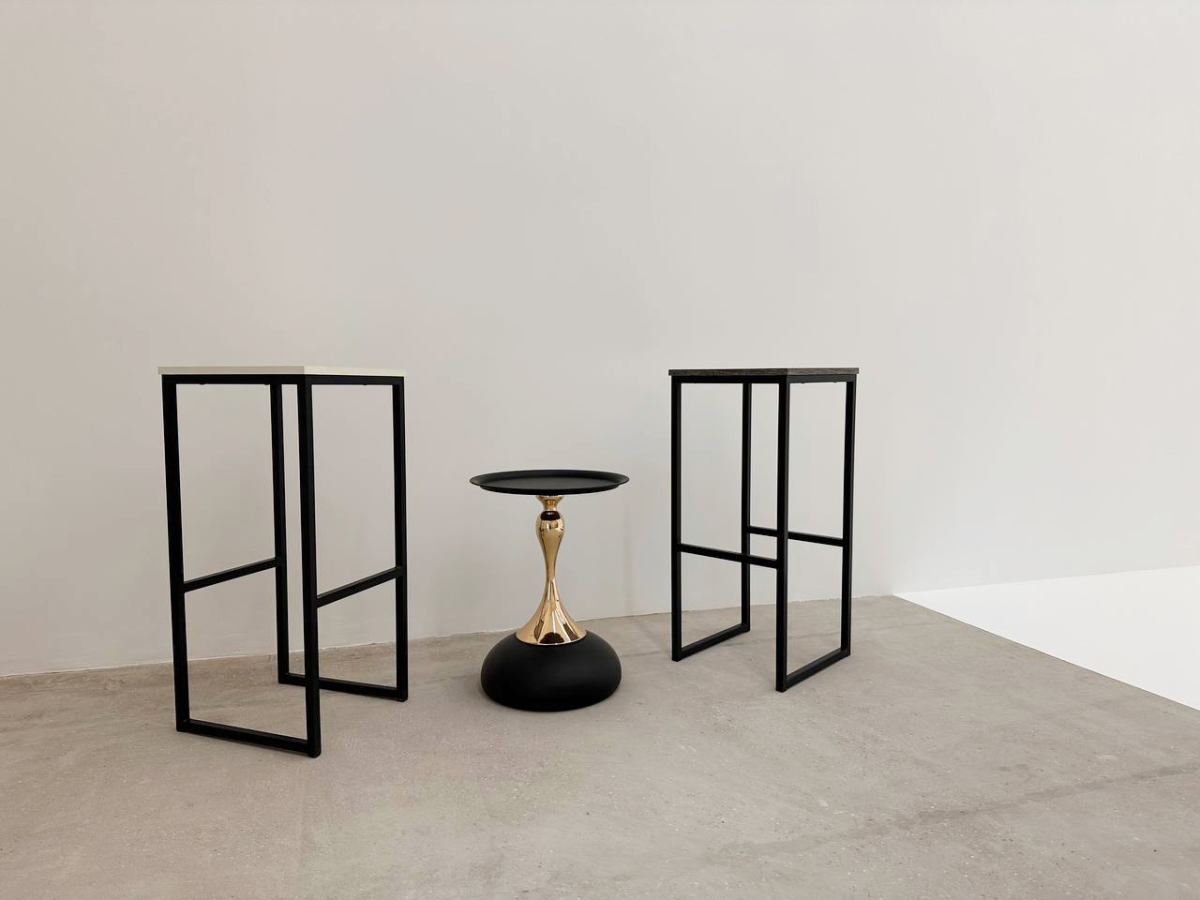 Стены в этой комнате выполнены в двух цветах — белый и черный, что создает универсальные условия для разных стилей съемки. На черной стене установлены 10 неоновых фигур, доба