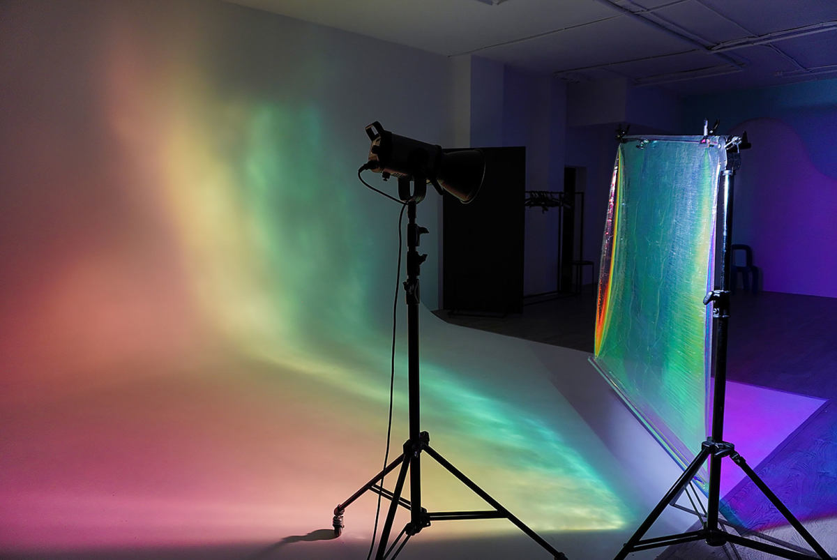 Два окна с блэк-аут шторами и полный комплект профессионального осветительного оборудования Profoto.