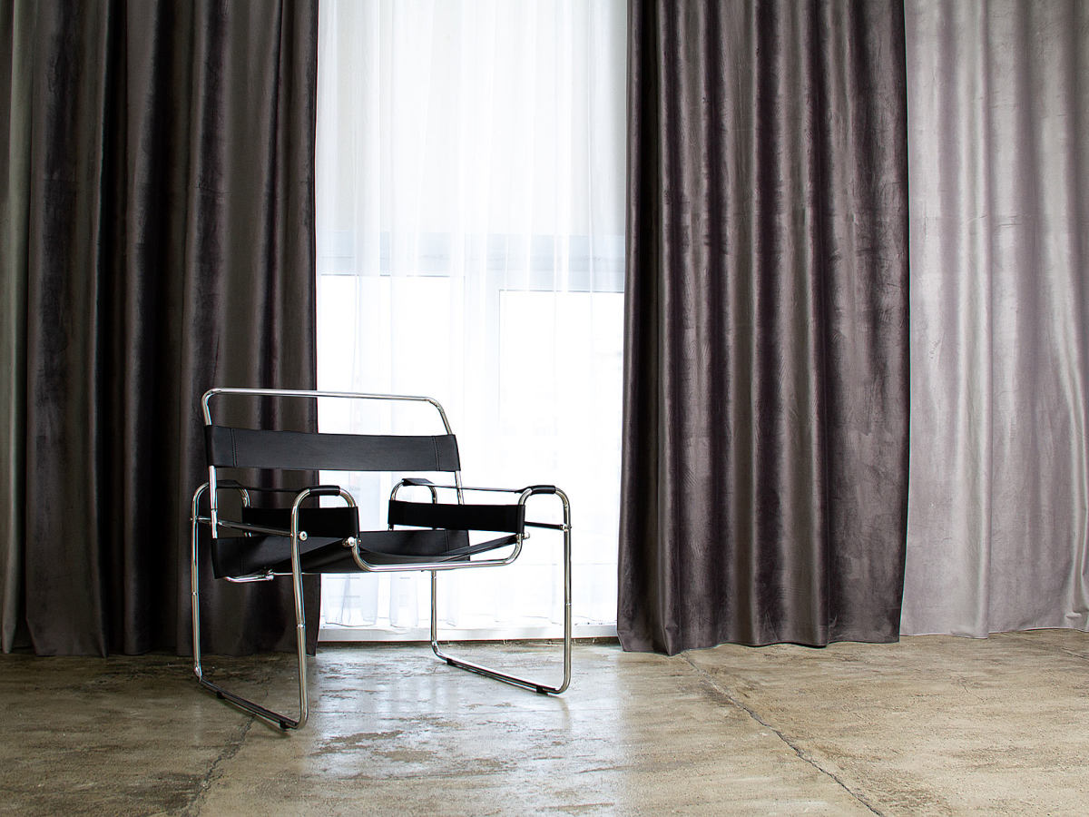 Зал с черными шторами для съёмки в тёмном ключе