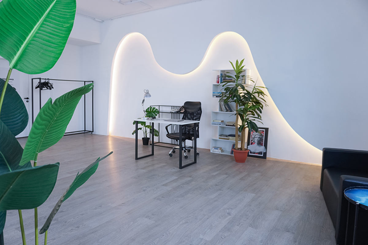 В зале вы найдете несколько локаций, которые подойдут для портретных съемок, стилистических капсул и лукбуков.