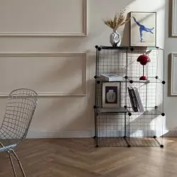 Стильный интерьерный зал с различными декорированными стенами, дизайнерской мебелью и предметами интерьера