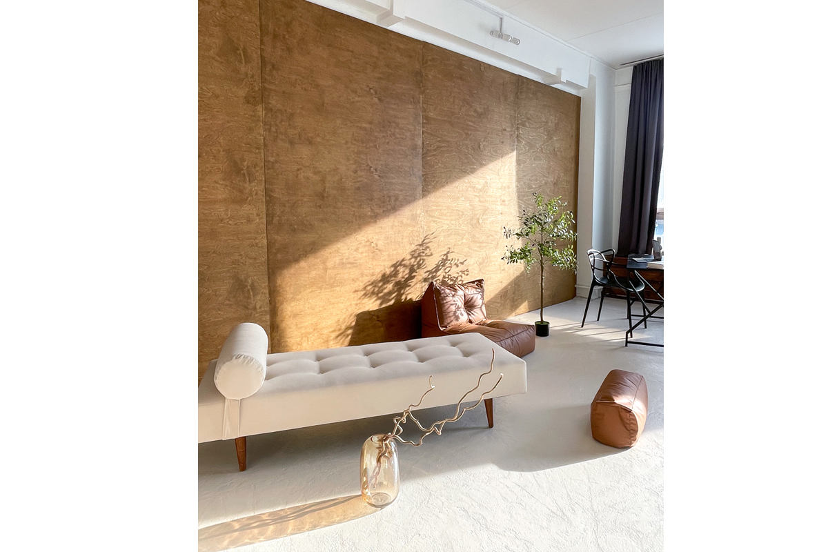 Неотъемлемыми деталями атмосферы зала Ray являются детально подобранные предметы интерьера и прямые солнечные лучи, заполняющие пространство на протяжении всего светового дня. Нейтральная фактура в виде бетонной стены и пола и монохромные оттенки соседствующих стен позволяют проводить съемки для создания стильных лукбуков и портретов. Приятным бонусом станут