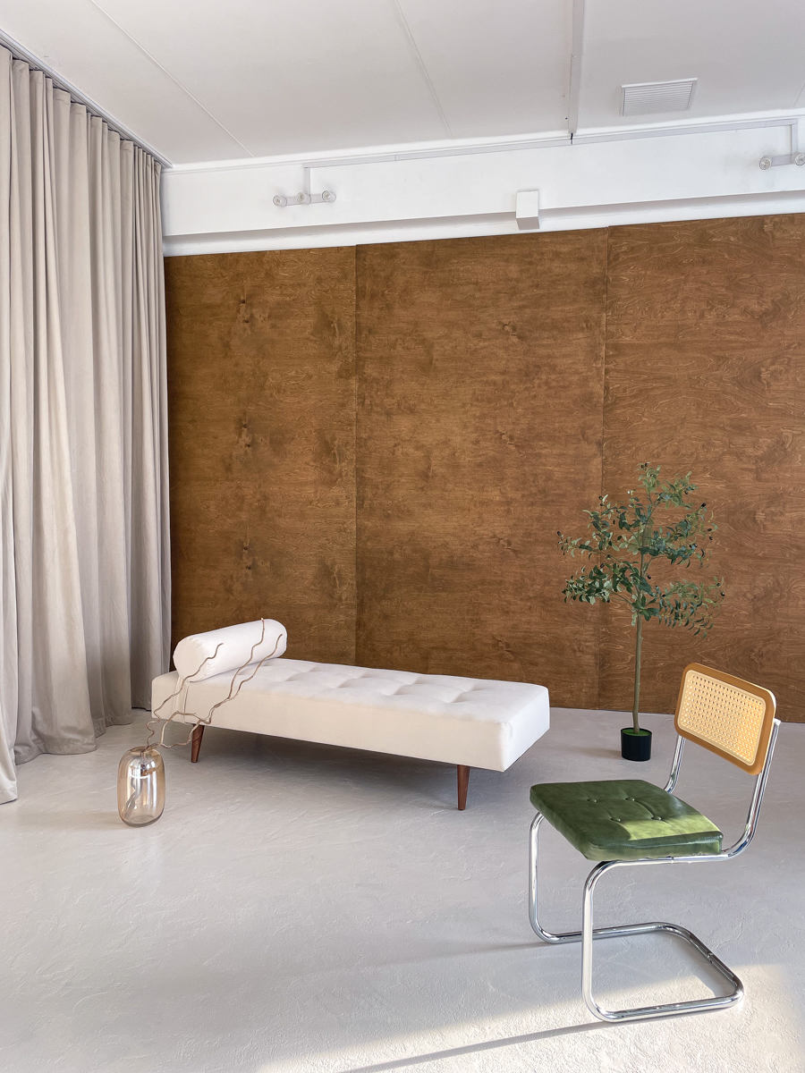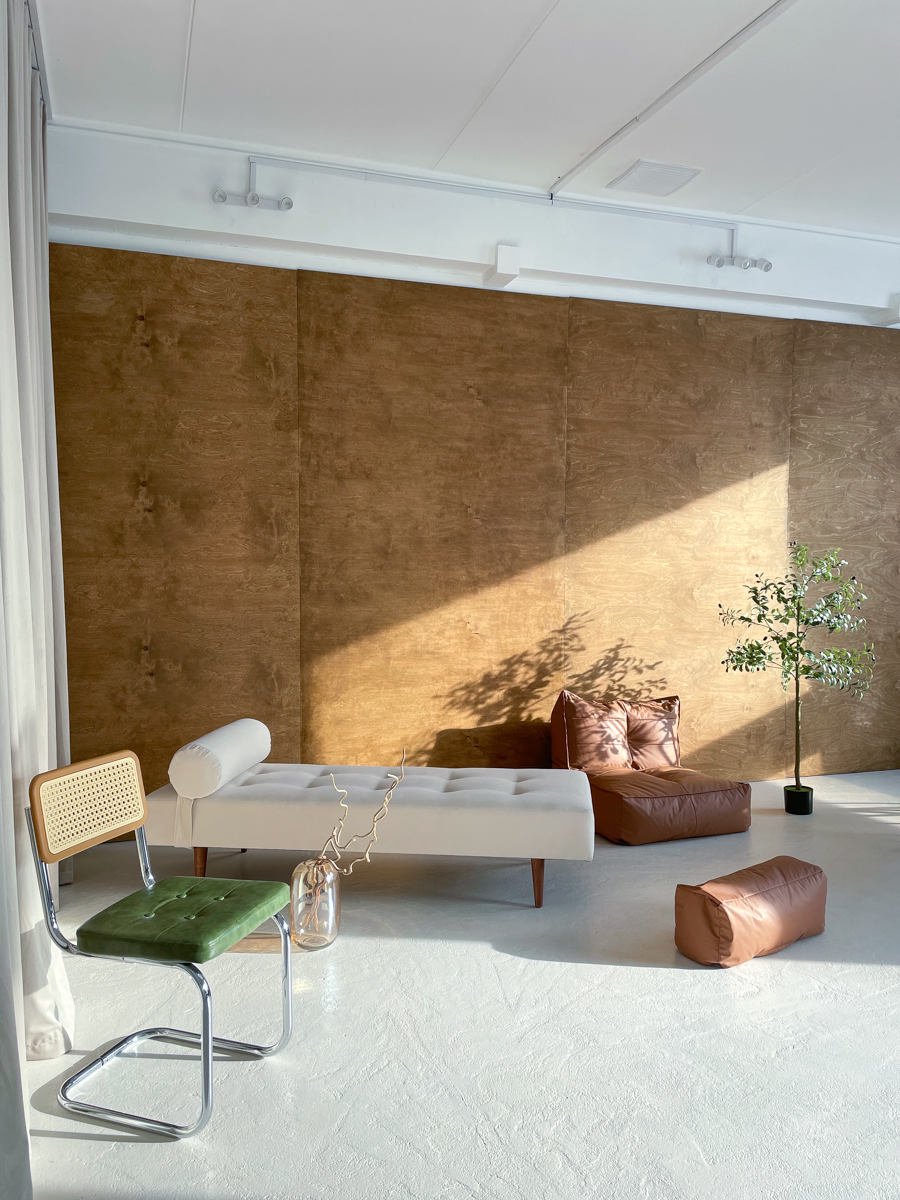 5 разных локаций в 1 зале: циклорама, тканевые и бумажные фоны, 2 интерьерные зоны, гримерка