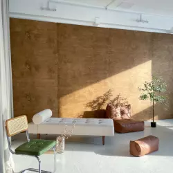 Стильный интерьерный зал с акцентом на современный дизайн и функциональность для видео-контента. Пространство идеально подходит для съёмок подкастов, интервью, обзоров, экспертных видео, а также для атмосферных фотосессий.