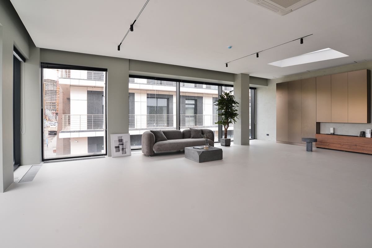 Просторный зал, светлый и минималистичный, 58 кв.м.