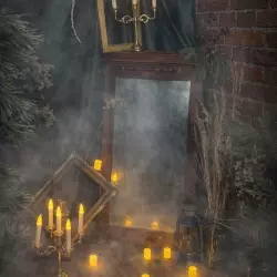 Самый востребованный зал среди наших постоянных фотографов. В одной комнате сразу три интересные зоны: мистический угол с фрагментами зеркал, романтическая зона с кроватью и окном и, любимые многими фотографами, стены с дизайнерской фактурной штукатуркой: белая и коричневая. Система на 3 фона и небо