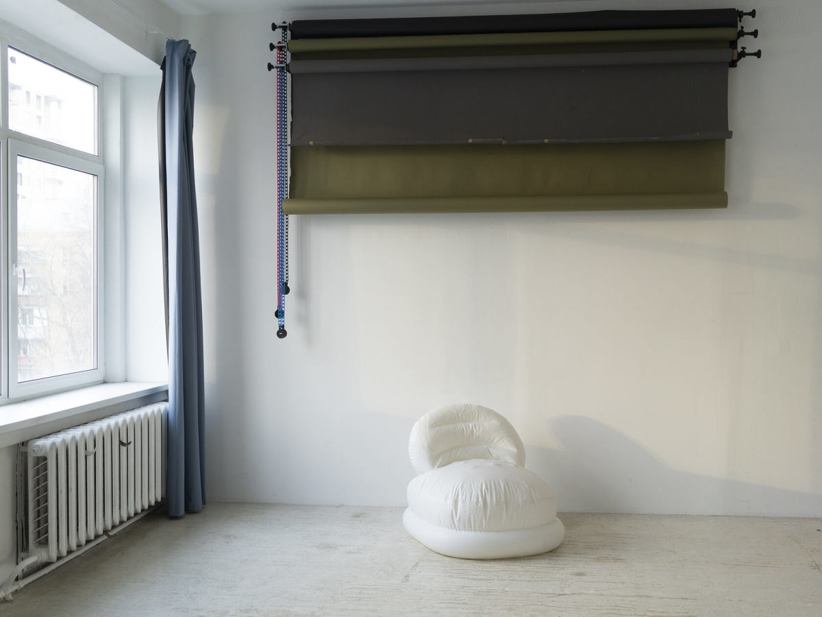 Светлое пространство разделенное на 2 зоны: большая белая циклорама и контент-интерьер с другой.