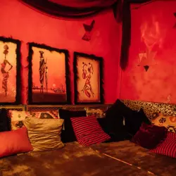 Красное освещение создает загадочную и романтичную атмосферу, а множество подушек и восточных атрибутов приглашают вас выплеснуть все свои фантазии наружу. Этот зал идеально подходит для ф