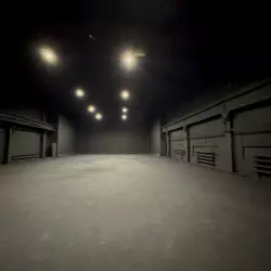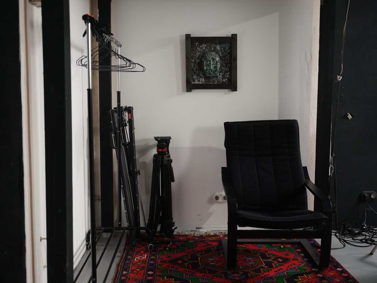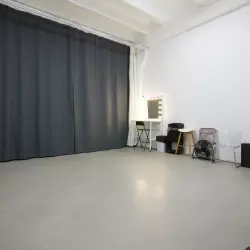 Полностью черный съемочный павильон величиной 300 м² и большими воротами 2.8×3 метра.