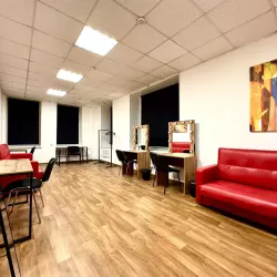 Павильон с 12 метровым хромакеем. Фермы для подвеса, 2 гримёрные комнаты, зона кухни, мебель.